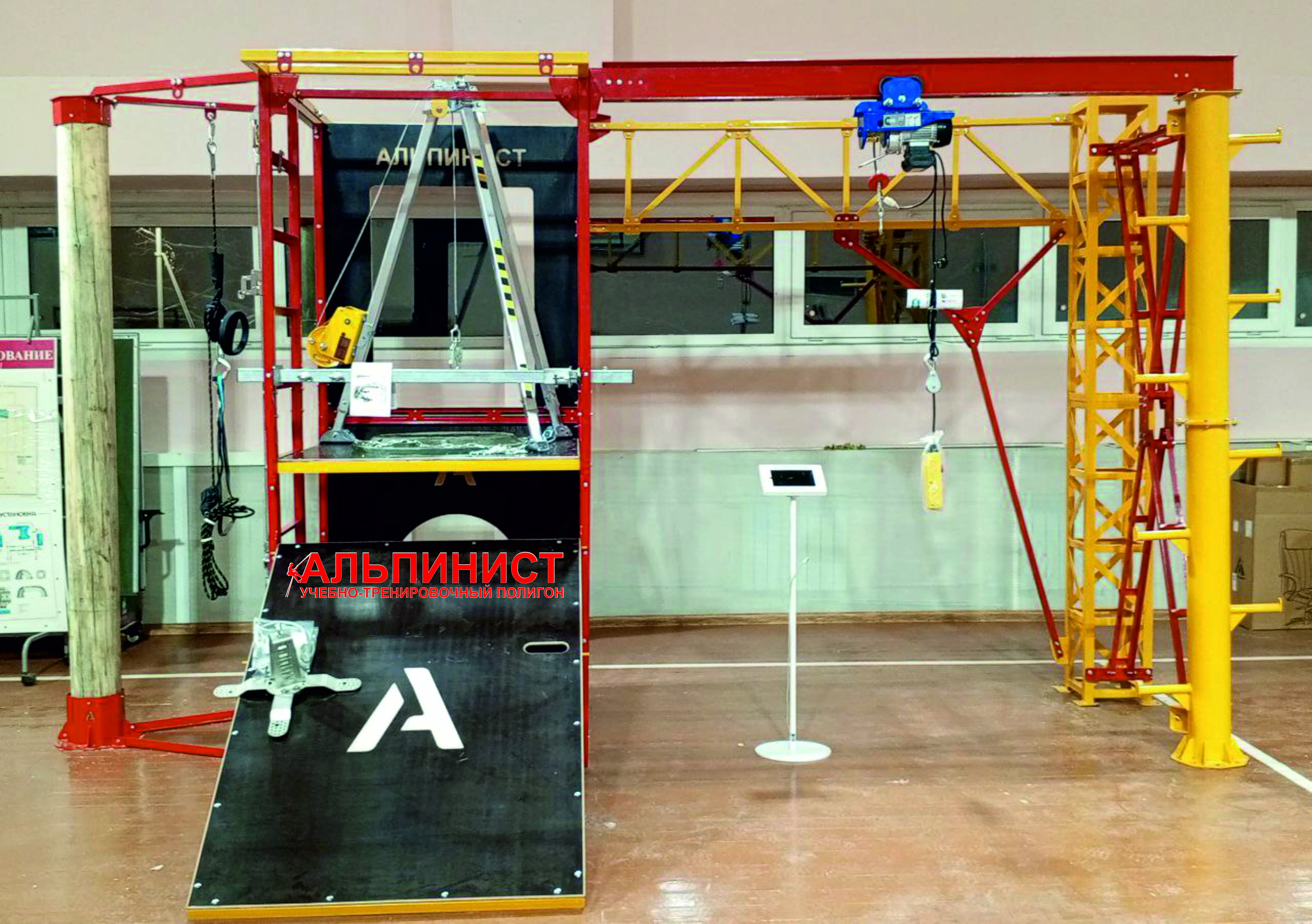 "АЛЬПИНИСТ-02-02" — это функциональный тренажер, созданный для отработки навыков безопасной работы на высоте. Он идеально подходит для учебных центров и классов, а благодаря мобильности может использоваться как переносной учебный комплекс, который легко транспортируется к месту обучения на предприятиях. Базовая конструкция тренажера отличается простотой сборки и при необходимости быстро демонтируется.